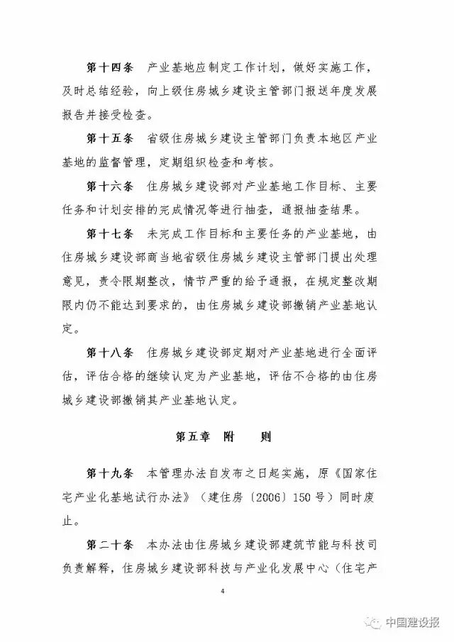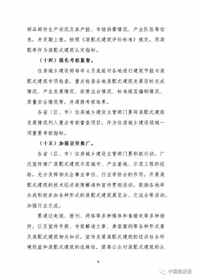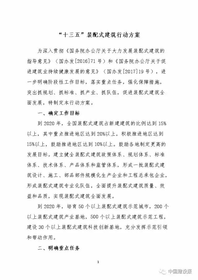 近日,住房城鄉(xiāng)建設(shè)部印發(fā)了《“十三五”裝配式建筑行動方案》、《裝配式建筑示范城市管理辦法》、《裝配式建筑產(chǎn)業(yè)基地管理辦法》。對近五年裝配式建筑的發(fā)展管理作出全面部署,要點及全文如下: 一 “十三五”裝配式建筑行動方案 到2020年,全國裝配式建筑占新建建筑的比例達(dá)到15%以上,其中重點推進(jìn)地區(qū)達(dá)到20%以上,積極推進(jìn)地區(qū)達(dá)到15%以上,鼓勵推進(jìn)地區(qū)達(dá)到10%以上。鼓勵各地制定更高的發(fā)展目標(biāo)。建立健全裝配式建筑政策體系、規(guī)劃體系、標(biāo)準(zhǔn)體系、技術(shù)體系、產(chǎn)品體系和監(jiān)管體系,形成一批裝配式建筑設(shè)計、施工、部品部件規(guī)?;a(chǎn)企業(yè)和工程總承包企業(yè),形成裝配式建筑專業(yè)化隊伍,全面提升裝配式建筑質(zhì)量、效益和品質(zhì),實現(xiàn)裝配式建筑全面發(fā)展。 到2020年,培育50個以上裝配式建筑示范城市,200個以上裝配式建筑產(chǎn)業(yè)基地,500個以上裝配式建筑示范工程,建設(shè)30個以上裝配式建筑科技創(chuàng)新基地,充分發(fā)揮示范引領(lǐng)和帶動作用。 方案從編制發(fā)展規(guī)劃、健全標(biāo)準(zhǔn)體系、完善技術(shù)體系、提高設(shè)計能力、增強(qiáng)產(chǎn)業(yè)配套能力、推行工程總承包、推進(jìn)建筑全裝修、促進(jìn)綠色發(fā)展、提高工程質(zhì)量安全、培育產(chǎn)業(yè)隊伍等十個方面對行業(yè)提出了要求。 在政策上,特別提出積極協(xié)調(diào)國土部門在土地出讓或劃撥時,將裝配式建筑作為建設(shè)條件內(nèi)容;在土地出讓合同或土地劃撥決定書中明確具體要求;裝配式建筑工程可參照重點工程報建流程納入工程審批綠色通道等供需雙向政策支持。 二 裝配式建筑示范城市管理辦法 裝配式建筑示范城市(以下簡稱示范城市)是指在裝配式建筑發(fā)展過程中,具有較好的產(chǎn)業(yè)基礎(chǔ),并在裝配式建筑發(fā)展目標(biāo)、支持政策、技術(shù)標(biāo)準(zhǔn)、項目實施、發(fā)展機(jī)制等方面能夠發(fā)揮示范引領(lǐng)作用,并按照該管理辦法認(rèn)定的城市。 申請示范的城市向當(dāng)?shù)厥〖壸》砍青l(xiāng)建設(shè)主管部門提出申請。 申請產(chǎn)業(yè)基地的企業(yè)應(yīng)符合下列條件: 1.具有獨立法人資格; 2.具有較強(qiáng)的裝配式建筑產(chǎn)業(yè)能力; 3.具有先進(jìn)成熟的裝配式建筑相關(guān)技術(shù)體系,建筑信息模型(BIM)應(yīng)用水平高; 4.管理規(guī)范,具有完善的現(xiàn)代企業(yè)管理制度和產(chǎn)品質(zhì)量控制體系,市場信譽(yù)良好; 5.有一定的裝配式建筑工程項目實踐經(jīng)驗,以及與產(chǎn)業(yè)能力相適應(yīng)的標(biāo)準(zhǔn)化水平和能力,具有示范引領(lǐng)作用; 6.其他應(yīng)具備的條件。 申請示范的城市應(yīng)符合下列條件: 1.具有較好的經(jīng)濟(jì)、建筑科技和市場發(fā)展等條件; 2.具備裝配式建筑發(fā)展基礎(chǔ),包括較好的產(chǎn)業(yè)基礎(chǔ)、標(biāo)準(zhǔn)化水平和能力、一定數(shù)量的設(shè)計生產(chǎn)施工企業(yè)和裝配式建筑工程項目等; 3.制定了裝配式建筑發(fā)展規(guī)劃,有較高的發(fā)展目標(biāo)和任務(wù); 4.有明確的裝配式建筑發(fā)展支持政策、專項管理機(jī)制和保障措施; 5.本地區(qū)內(nèi)裝配式建筑工程項目一年內(nèi)未發(fā)生較大及以上生產(chǎn)安全事故; 6.其他應(yīng)具備的條件。 評審內(nèi)容主要包括: 1.當(dāng)?shù)氐慕?jīng)濟(jì)、建筑科技和市場發(fā)展等基礎(chǔ)條件; 2.裝配式建筑發(fā)展的現(xiàn)狀:政策出臺情況、產(chǎn)業(yè)發(fā)展情況、標(biāo)準(zhǔn)化水平和能力、龍頭企業(yè)情況、項目實施情況、組織機(jī)構(gòu)和工作機(jī)制等; 3.裝配式建筑的發(fā)展規(guī)劃、目標(biāo)和任務(wù); 4.實施方案和下一步將要出臺的支持政策和措施等。 各地可結(jié)合實際細(xì)化評審內(nèi)容和要求。 三 裝配式建筑產(chǎn)業(yè)基地管理辦法 裝配式建筑產(chǎn)業(yè)基地(以下簡稱產(chǎn)業(yè)基地)是指具有明確的發(fā)展目標(biāo)、較好的產(chǎn)業(yè)基礎(chǔ)、技術(shù)先進(jìn)成熟、研發(fā)創(chuàng)新能力強(qiáng)、產(chǎn)業(yè)關(guān)聯(lián)度大、注重裝配式建筑相關(guān)人才培養(yǎng)培訓(xùn)、能夠發(fā)揮示范引領(lǐng)和帶動作用的裝配式建筑相關(guān)企業(yè),主要包括裝配式建筑設(shè)計、部品部件生產(chǎn)、施工、裝備制造、科技研發(fā)等企業(yè)。 申請產(chǎn)業(yè)基地的企業(yè)向當(dāng)?shù)厥〖壸》砍青l(xiāng)建設(shè)主管部門提出申請。 申請產(chǎn)業(yè)基地的企業(yè)應(yīng)符合下列條件: 1.具有獨立法人資格; 2.具有較強(qiáng)的裝配式建筑產(chǎn)業(yè)能力; 3.具有先進(jìn)成熟的裝配式建筑相關(guān)技術(shù)體系,建筑信息模型(BIM)應(yīng)用水平高; 4.管理規(guī)范,具有完善的現(xiàn)代企業(yè)管理制度和產(chǎn)品質(zhì)量控制體系,市場信譽(yù)良好; 5.有一定的裝配式建筑工程項目實踐經(jīng)驗,以及與產(chǎn)業(yè)能力相適應(yīng)的標(biāo)準(zhǔn)化水平和能力,具有示范引領(lǐng)作用; 6.其他應(yīng)具備的條件。 評審內(nèi)容主要包括: 1.當(dāng)?shù